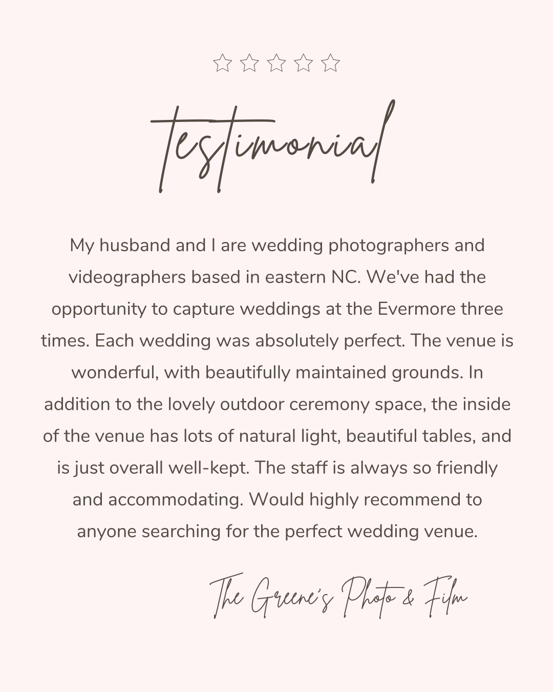 Let your dream wedding begin here at The Evermore. Conveniently located within the Triangle Area,